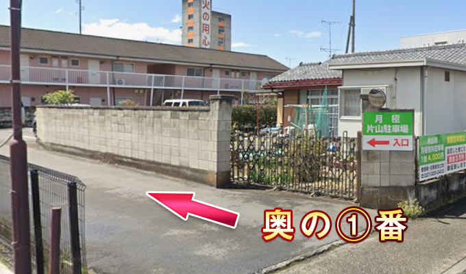 この駐車場奥の1番に停めて下さい。